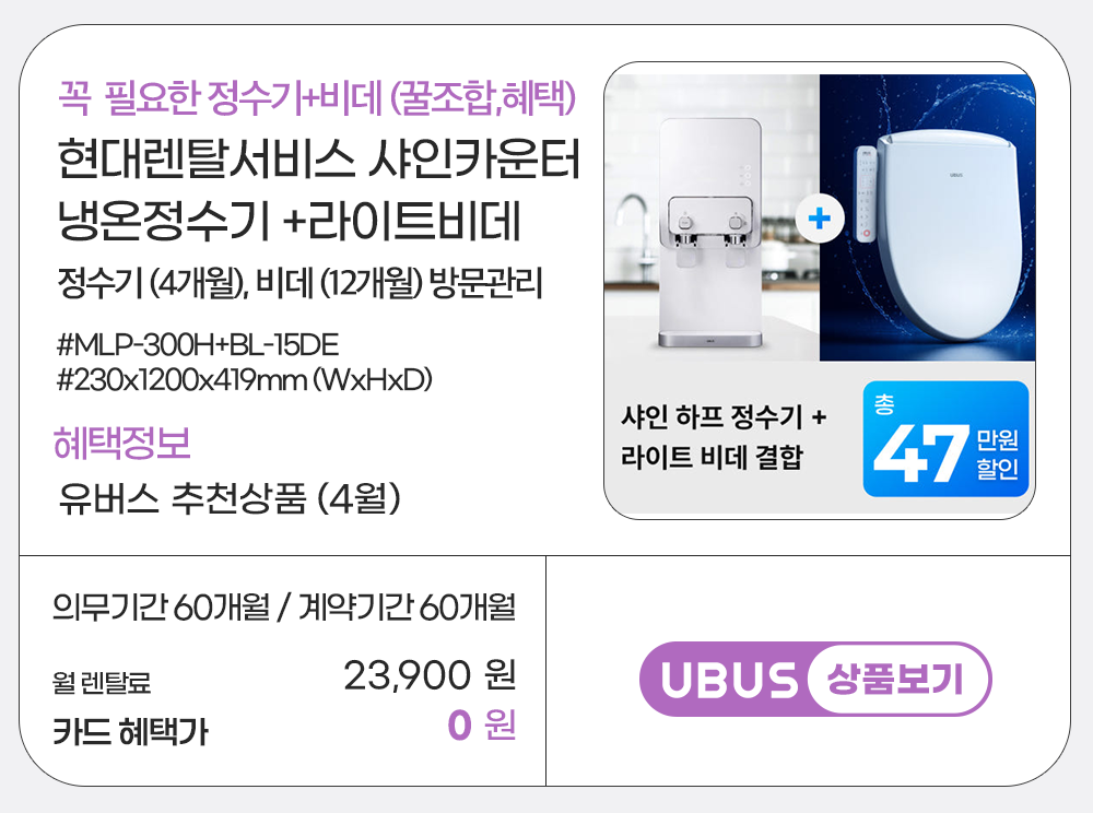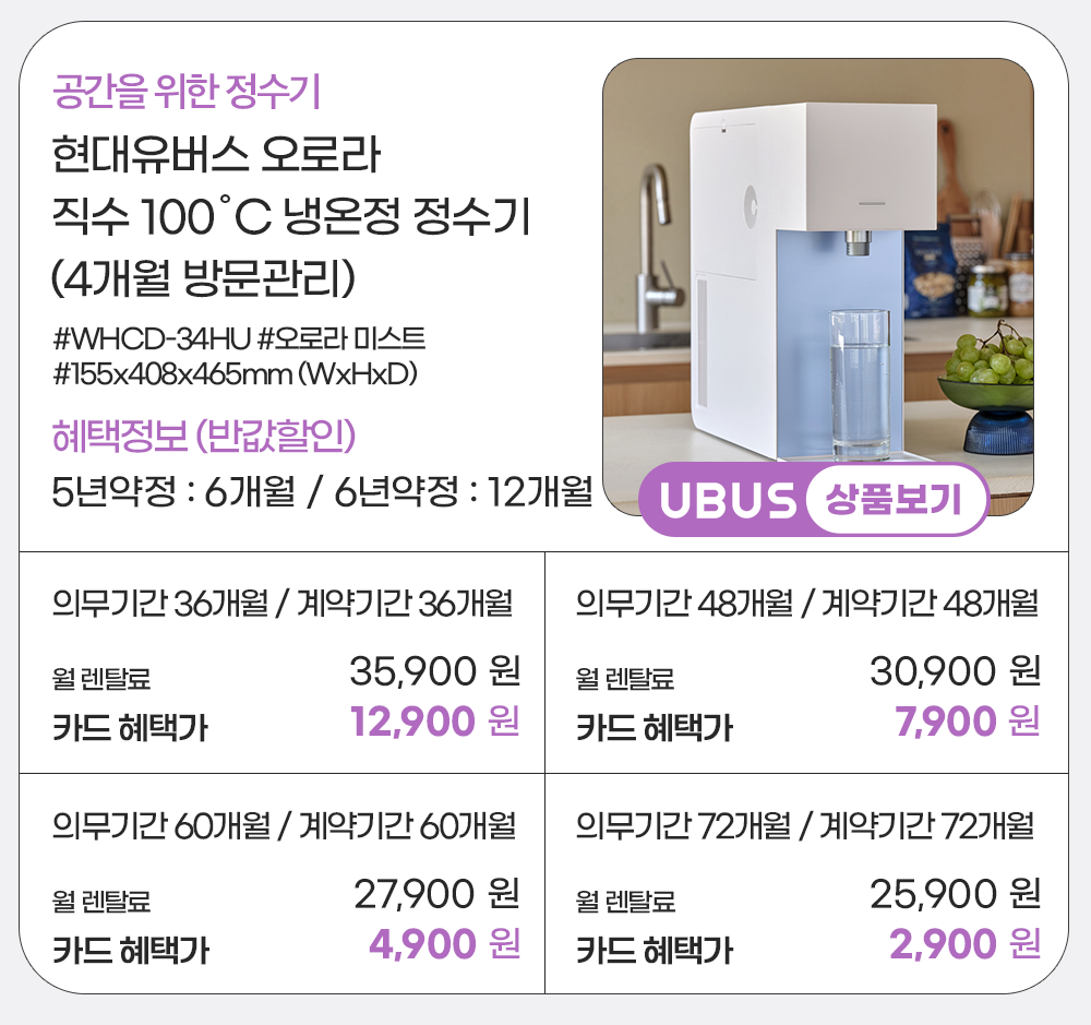 홈페이지 상담 및 렌탈 구매 필수 이름, 휴대폰번호, 주소 (우편번호, 상세주소) 렌탈 신청에 따른 고객 상담 및 렌탈구매 3개월